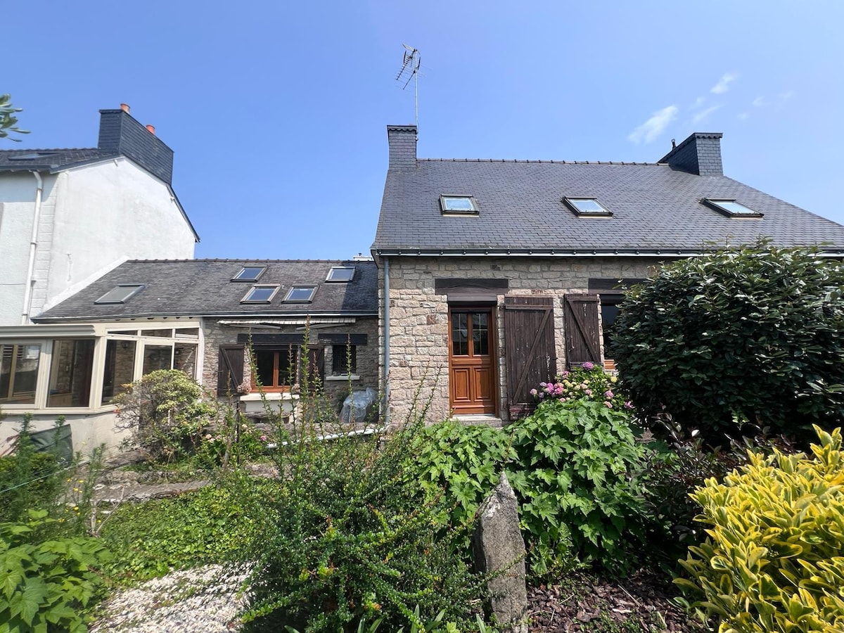 Very well equipped, peaceful and central small accommodation. Traditional Breton farmhouse. 5 minutes from the beach, south facing. On the ground floor: equipped kitchen (dishwasher, oven, small freezer); dining room, TV lounge laundry room with toilet, washing machine and dryer Upstairs an open bedroom with a double bed one bedroom with a double bed and a single bed bathroom, toilet and shower Small outdoor "passing" with table and chairs.