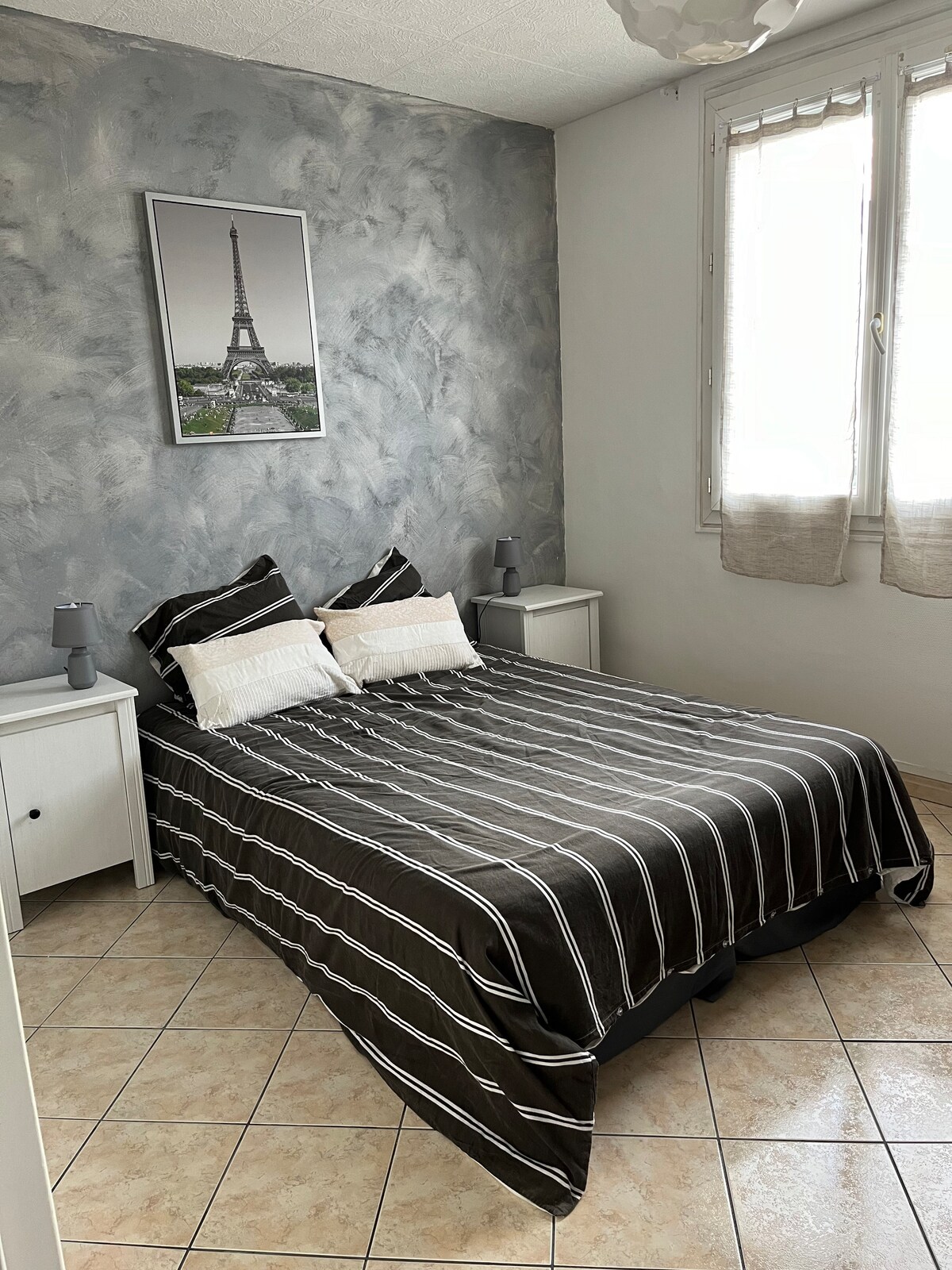 Enjoy a stylish and central home. Peaceful and close to all amenities, bus stop 200 m away, Bourges city center 5 minutes away. Recently renovated with very good bedding 1-160x200 for one bedroom and 2-80x200 for the second bedroom, each of them are equipped with connected flat screens and a desk area. Bathroom with large Italian shower. Separate toilet. Equipped kitchen, oven, dishwasher, coffee, tea... Living room/dining room Outdoor area with garden furniture.