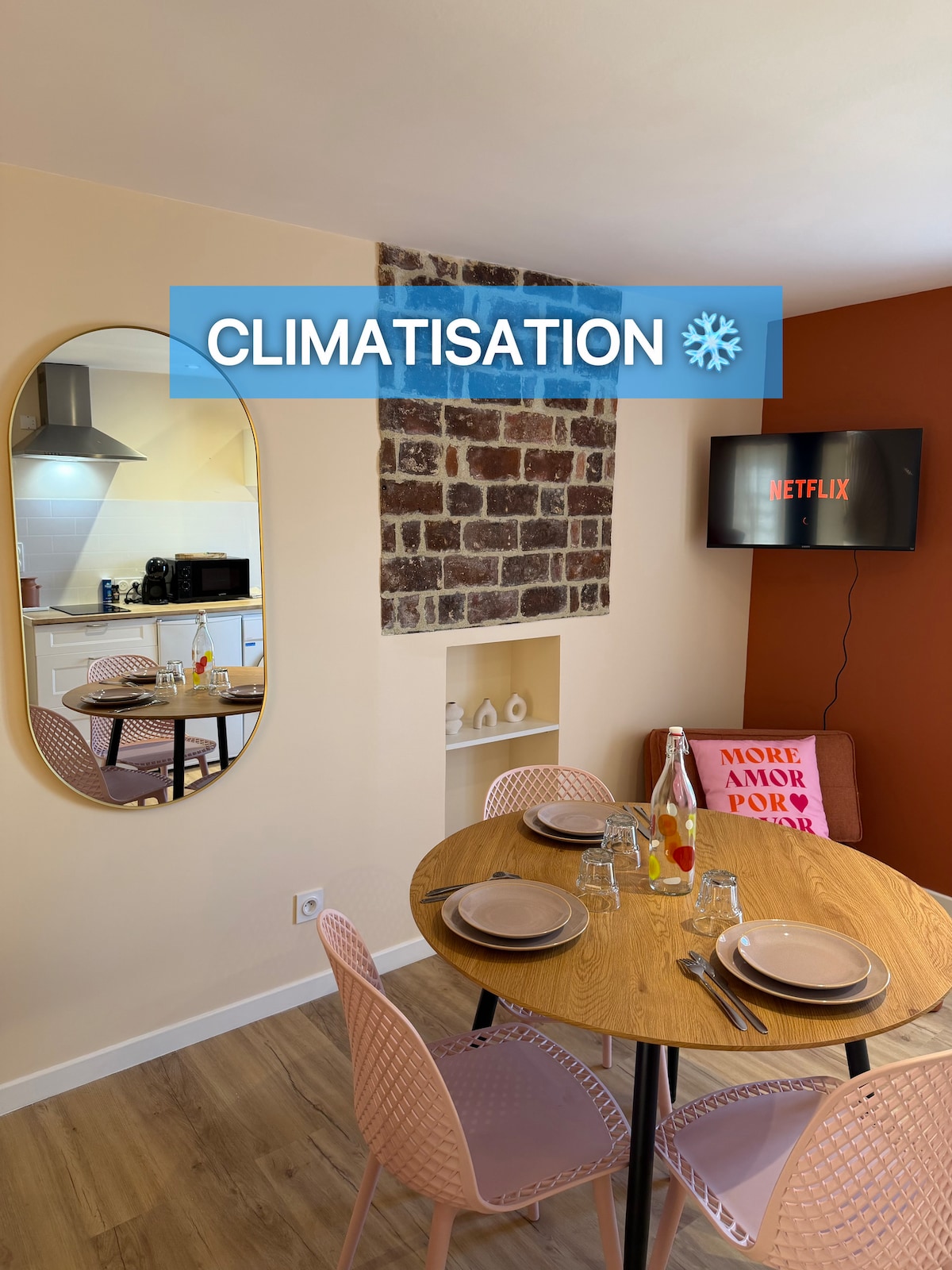 Come and discover the historic capital of Berry and enjoy an elegant accommodation, located in the agglomeration 13 minutes from the city of Bourges. Kick back and relax in this calm, stylish space. The apartment has two bedrooms. The first with a 140/190 bed, and the second, a bunk bed with two 90/190 beds. A fully equipped kitchen with oven, stove, fridge, dishwasher and everything you need to make a good meal!Canal+ services and all TV packages available