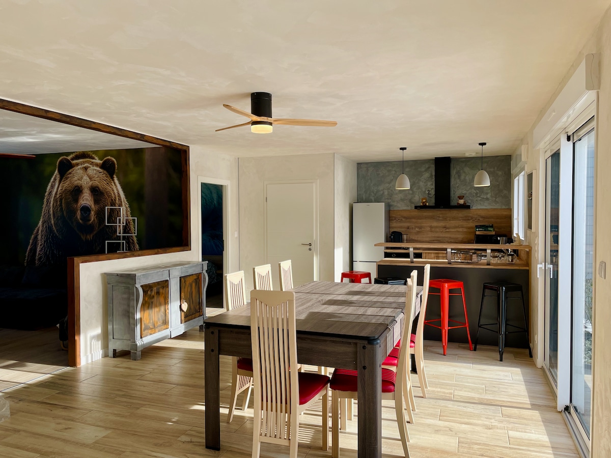 Come and relax in this unique home with all the comforts you need to feel good. Great for spending friendly moments for families or groups of friends. With stunning views of Switzerland, this chalet allows you to contemplate a landscape in relief during your meals. It is a privileged place if you love nature and feel the need to recharge your batteries. Whether you like cycling or walking with or without snowshoes, come and discover the beautiful regional trails.