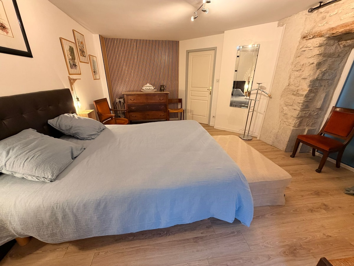 Beautiful apartment of 100 m2 independent and completely renovated in a 16th century manor, surrounded by a large enclosed and wooded park, at the foot of the Vercors. In the heart of the village of Claix, many shops are within walking distance: bakery, butcher, press, etc. You will have a reserved space in the park to relax and admire the panorama of the surrounding mountains. Numerous hiking routes (Vercors, Trieves, etc.) and access to ski resorts 30-40 minutes by car