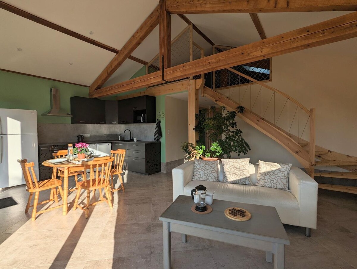 A real cozy nest, everything has been thought out for your comfort. A cozy place, furnished by Marie with natural and raw materials. The separate bathroom allows for rest and relaxation. The terrace allows you to enjoy a good time with your favorite reading, have breakfast or spend a pleasant evening by the warmth of the fire pit.