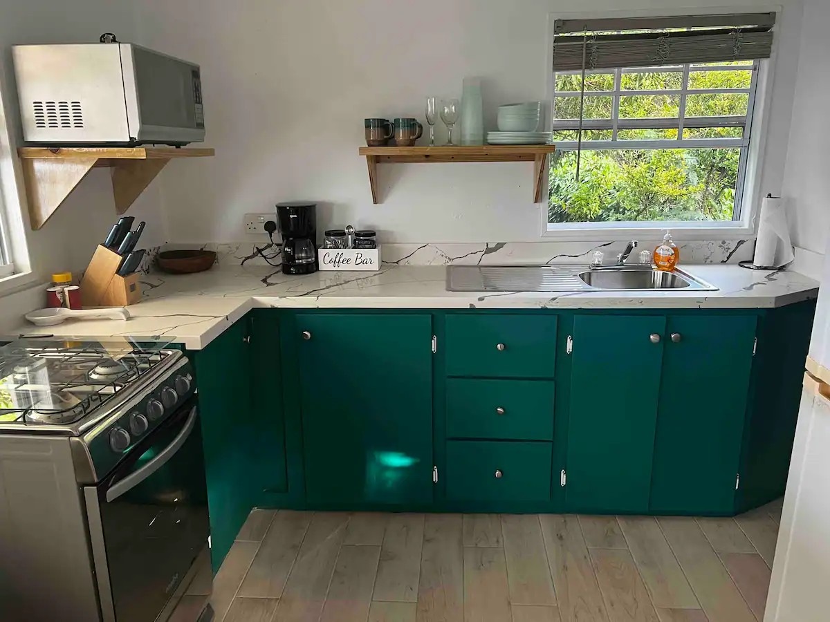 Relax at this tranquil getaway, just 5 minutes from the beach & Castries. This breezy former bird sanctuary is ideal for couples or singles seeking a peaceful retreat. Centrally located with a private setting, it’s perfect for exploring the island. The air-conditioned cottage has a kitchen, workspace, and private terrace. As the contractor of this renovated space with 20+ years of real estate experience, I offer free consultations and project management services for those looking to invest.
