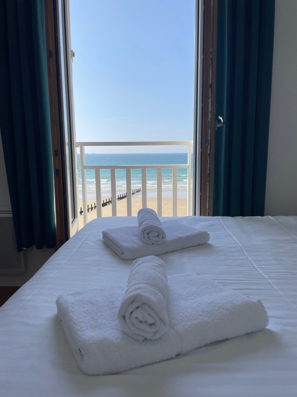 The apartment is on the 6th floor (with a lift) and very close to the beach. It has stunning sea views facing west allowing you to enjoy spectacular sunsets. It is situated in a quiet area with with a pub and restaurants at the end of the road. Close by there is also a grocer and a patisserie that make fresh croissants and can give you coffee. L'appartement est au 6ieme etage (avec ascenseur) pres de la plage avec une vue de la mer au dessus des remparts, vers l'ouest .