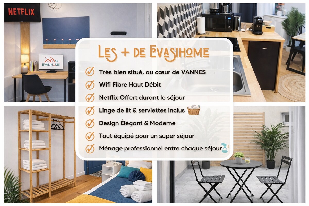 Cozy 2-bedroom in Vannes – Netflix & private patio