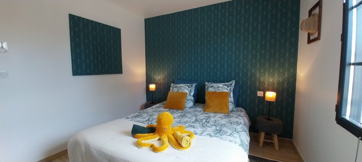 furnished rental for 2 or 4 people located in the small picturesque village of Chaucer 500 meters from the beach, close to many bike paths Beautiful beach where you can fish, swim, surf or just sunbathe Quietly located house on a private and closed driveway with private parking space 2 enclosed flowered courtyards with outdoor seating each and one with electric griddle beach games Equipped kitchen: induction cooktop, electric oven, microwave, dishwasher