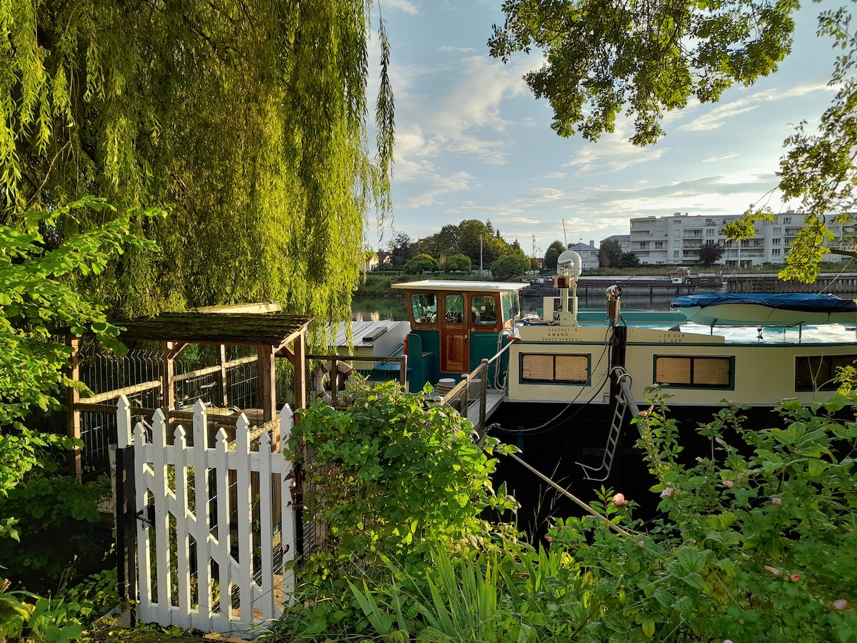 28 minutes from Paris, this panoramic Houseboat is moored in the Saint-Fargeau-Ponthierry Marina. L'Escale Royale offers you an unforgettable experience, a suite with panoramic views right in front of your bed and a zenith roof just above you, allowing you to relax and have a great time together while enjoying the different views.