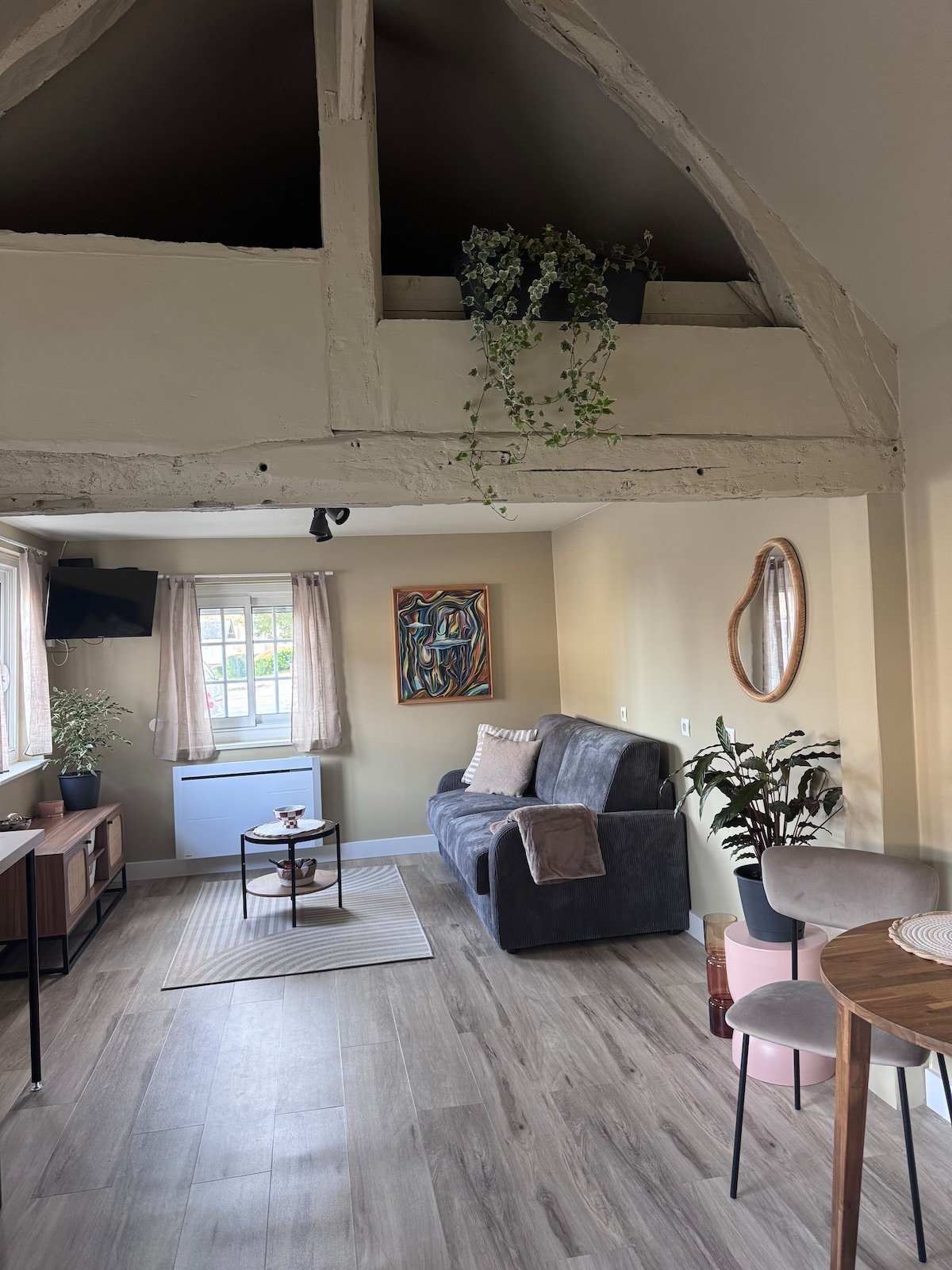 Situé dans un cadre de verdure, notre logement style loft vous offre l' emplacement idéal pour découvrir Honfleur (9km) et la Côte Fleurie. Pour vous accueillir nous avons aménagé l’étage de notre maison avec un accès privé. *Veuillez noter que l'escalier n'étant pas sécurisé nous ne pouvons malheureusement pas accueillir enfants ou bébés. Un espace extérieur dans notre jardin est a votre disposition avec barbecue, table, chaises et parasol. Le logement est équipé d'un climatiseur mobile.