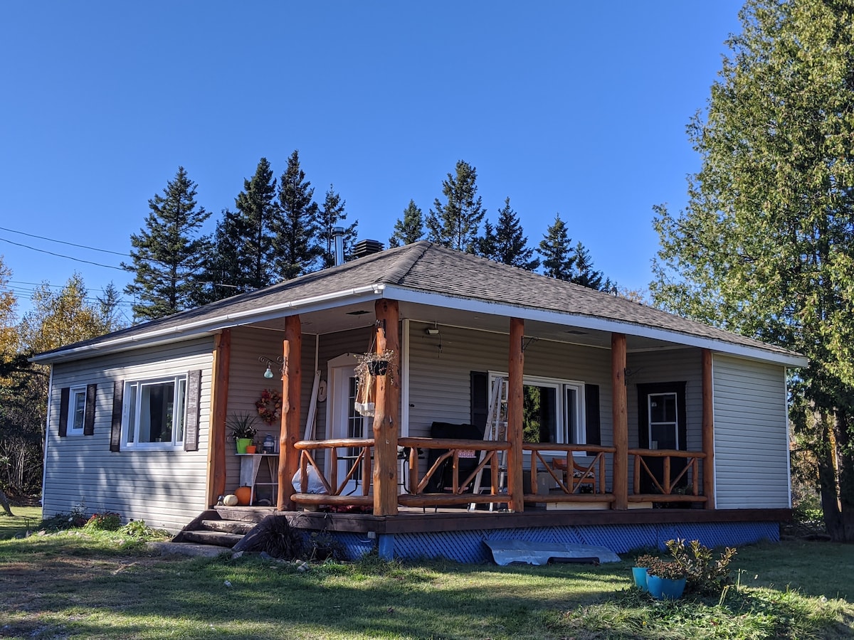 House located at the top of a cliff with a panoramic and direct view (neither road nor electrical wires) as far as the eye can see over the River! Welcome to lovers of Nature, Sea and Mountains. Whether you are skiers, snowboarders, hikers, teleworkers, etc... In summer as in winter, you will be delighted by the landscapes and the beauty of the environment! Located 32 minutes from the Parc de la Gaspésie service center, where you will find 170 kilometers of trails for all levels.