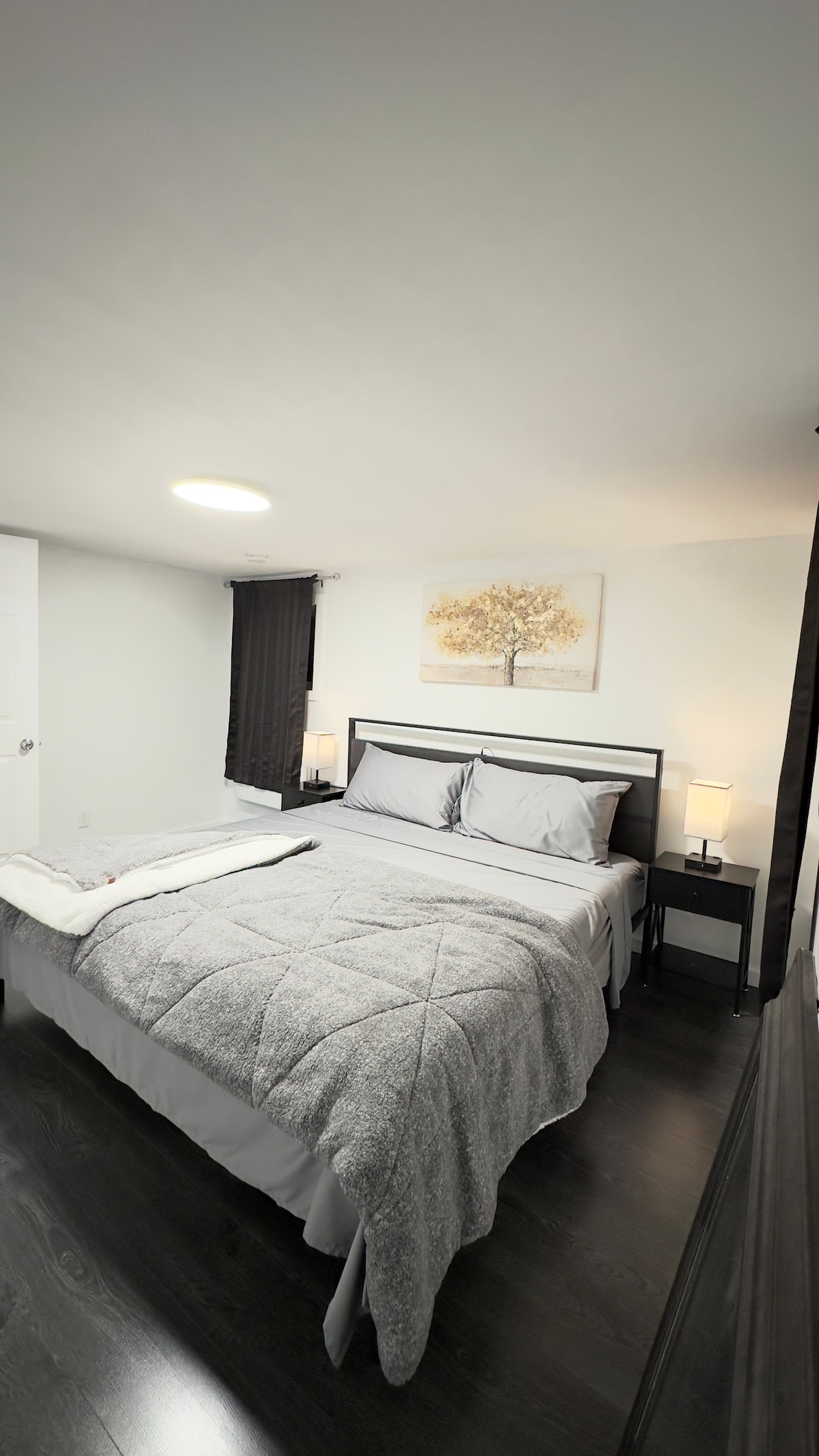 Welcome to our 2 Bedroom Basement Suite in the ❤️ of Laval! Quiet, family-friendly, calm neighborhood to enjoy independence! Central location to most stores! Includes: 💎 2 Beds (1 King, 1 Queen) 💎 Well lit - dimmable and smart lights 💎 55" smart 4K TV 💎 Outdoor 2 cars parking 💎 1 Gbps Wi-Fi internet 💎 Washer-dryer on request 💎 Coffee, arcade basketball, puzzles to enjoy! Additional services 💎 Outdoor pool 16x32ft 💎 Charcoal or Gas BBQ 💎 Bedding (Sheets, Towels, Pillows)