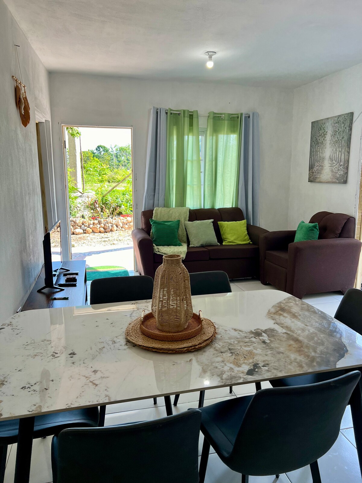 ▪️We offer newly- renovated comfortable two- floor apts in a friendly safe community overlooking CARDIFF HALL Beach in the Resort Town of Runaway Bay in St. Ann Jamaica ▪️No need to worry about security / safety because there are 24 hour surveillance camera and host lives on property ▪️We offer one 1bdr & 2br ▪️Price starts from 100US for 2 guests and increases by 30US per additional guests ▪️We are about 1hr away from the Sangsters International Airport ✈️ 25 mins from Ocho Rios