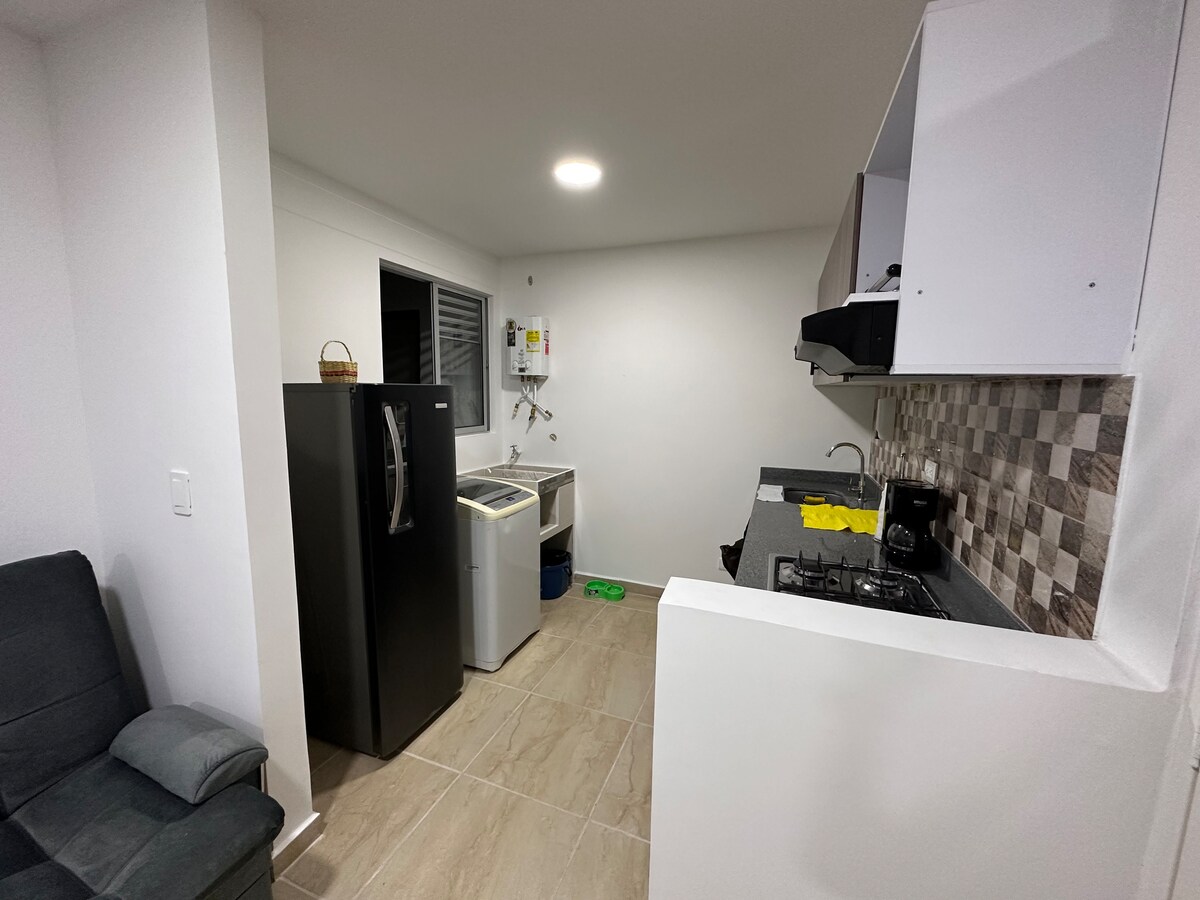 20 meters from the park, apartment with a single space equipped for 2 to 5 people Check-in 3 pm - Check-out 12 noon Self-Check-in with Smart Lock •2 Double beds •Living room with sofa bed. •1 full bathroom with hot water •Hairdryer. • Smart TV with cable and Netflix account. • Fan •Closet •Dining room • Equipped kitchen. • A coffee maker. •Coffee, water, and peanuts. * BREAKFAST NOT INCLUDED * WE DO NOT HAVE PARKING