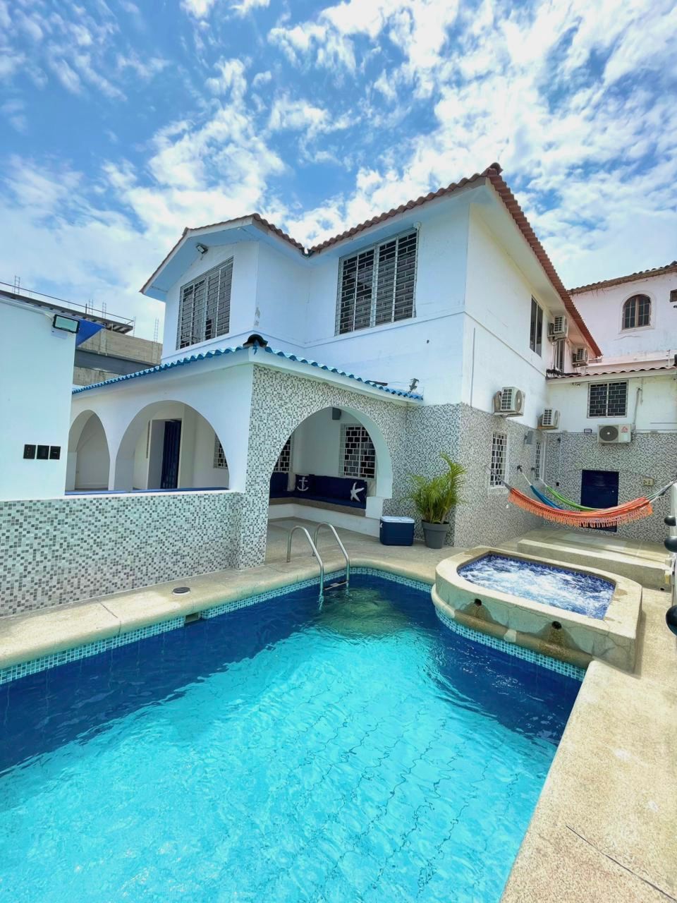 "EL TIMONEL" SPECTACULAR HOUSE AT THE FOOT OF THE SEA! FOR LODGING AND SUPER SPECIAL EVENTS It has 6 bedrooms, each with its own bathroom and A/C social area Incredible Big yard with Pool, Jacuzzi, grill, bars, terraces, hammocks, living room, 3 social baths Balcony terrace with an amazing view! You will feel that you are sailing in the sea :) Capacity for 15 people, you can add more with an additional Internet Parking Security guard Ask for our prices for Events Live the experiencie!