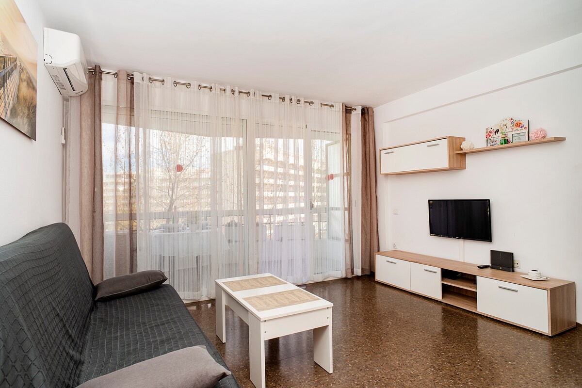 Apartamento céntrico esquinero con gran terraza amueblada y bonitas vistas a la C/Barcelona. Totalmente reformado y con piscina comunitaria. Dispone de cocina equipada con microondas, horno, lavadora, nevera, cafetera nespresso®, tostadora y todo lo necesario para cocinar como en casa. Aire acondicionado . Baño con gran plato de ducha. Comedor con TV plana y cómodo sofá cama para 2 personas. Habitación con cama de matrimonio y armario empotrado. Wifi gratuito. A 7 minutos de la playa andando.