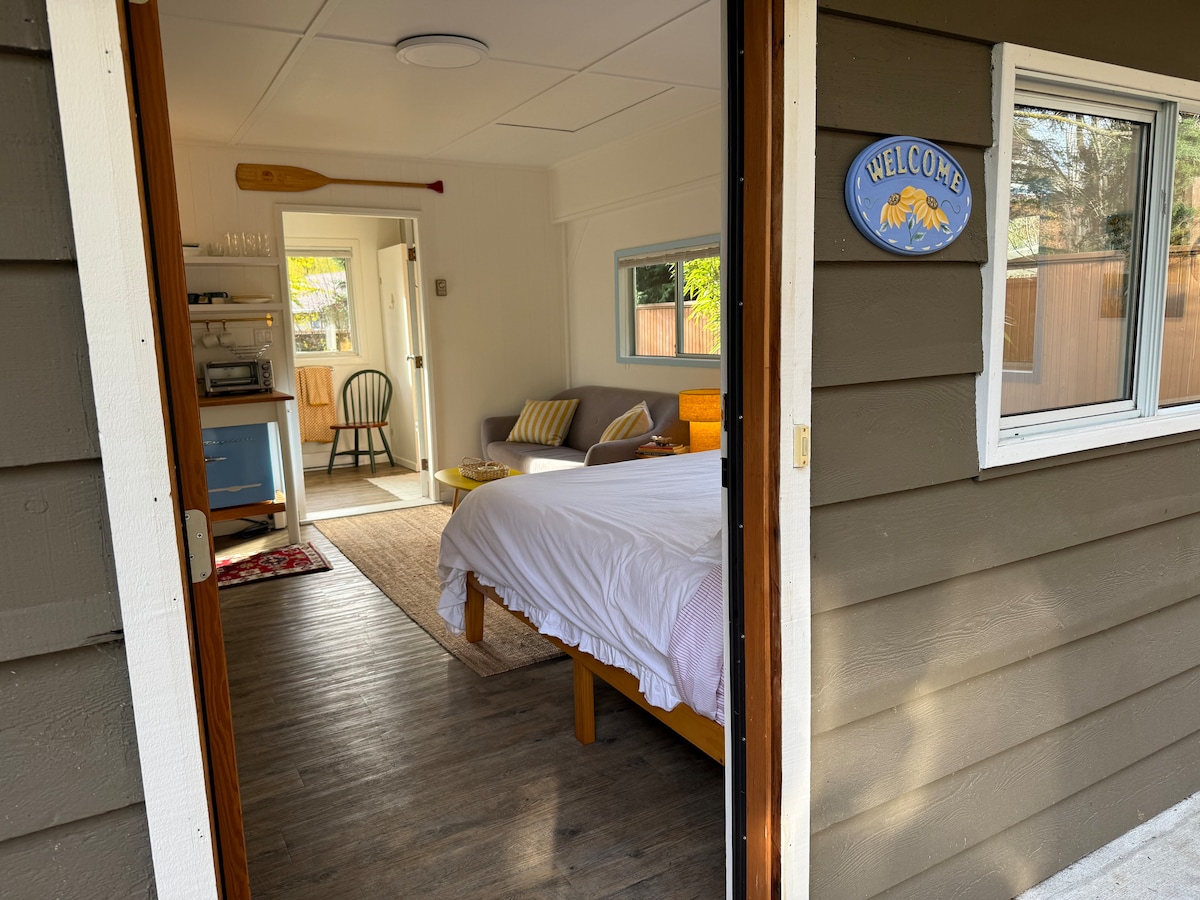 Our 300 sq. ft. cottage is situated on a 2.5 acre property where we reside. The location is perfect for those who want to have a place to relax after exploring the local vineyards, farmers’ markets, parks, beaches and walking trails. The cottage’s style mimics that of the main house, which is about 60 feet away from the cottage. We respect your privacy, and will leave you to yourselves. We love meeting new people and are LGBTQ+ friendly!