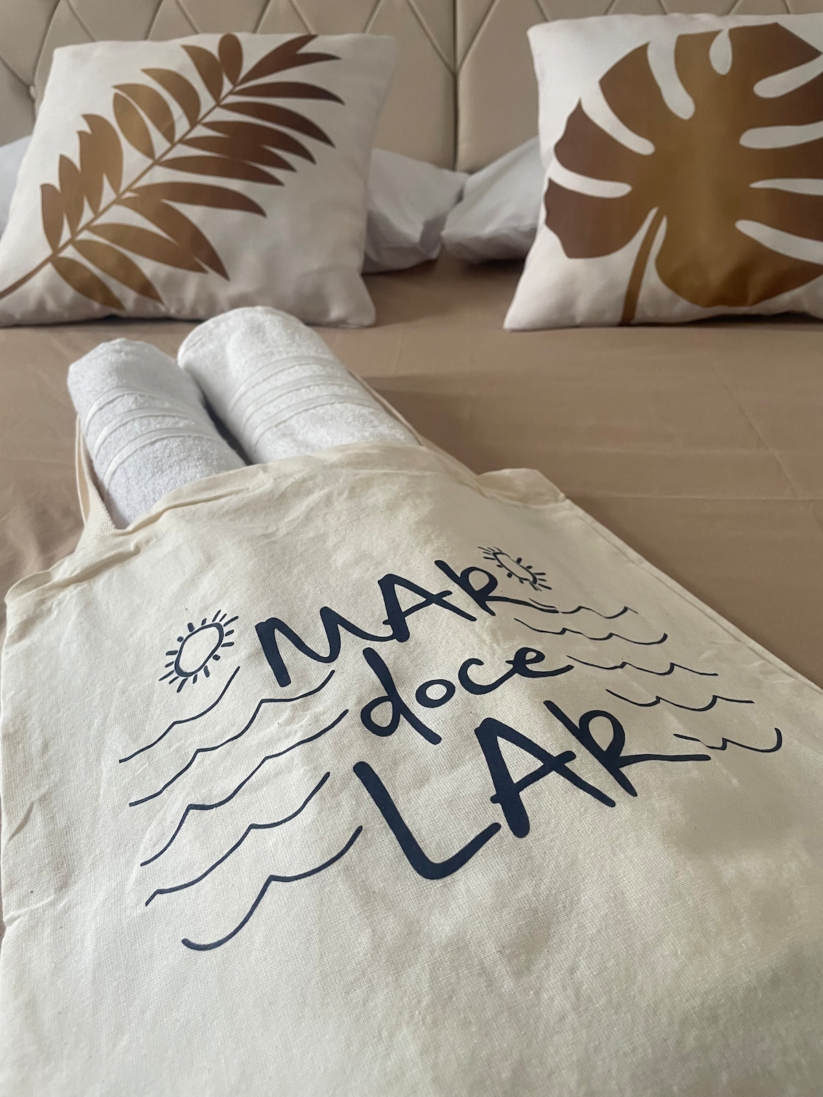Studio de 50 m², com cama queen size, ar condicionado, TV, wifi, closet, sofá, mesa para refeições, banheiro e varanda. Situada num condomínio bucólico, bem sossegado, com ares de interior, mas pertinho de tudo.