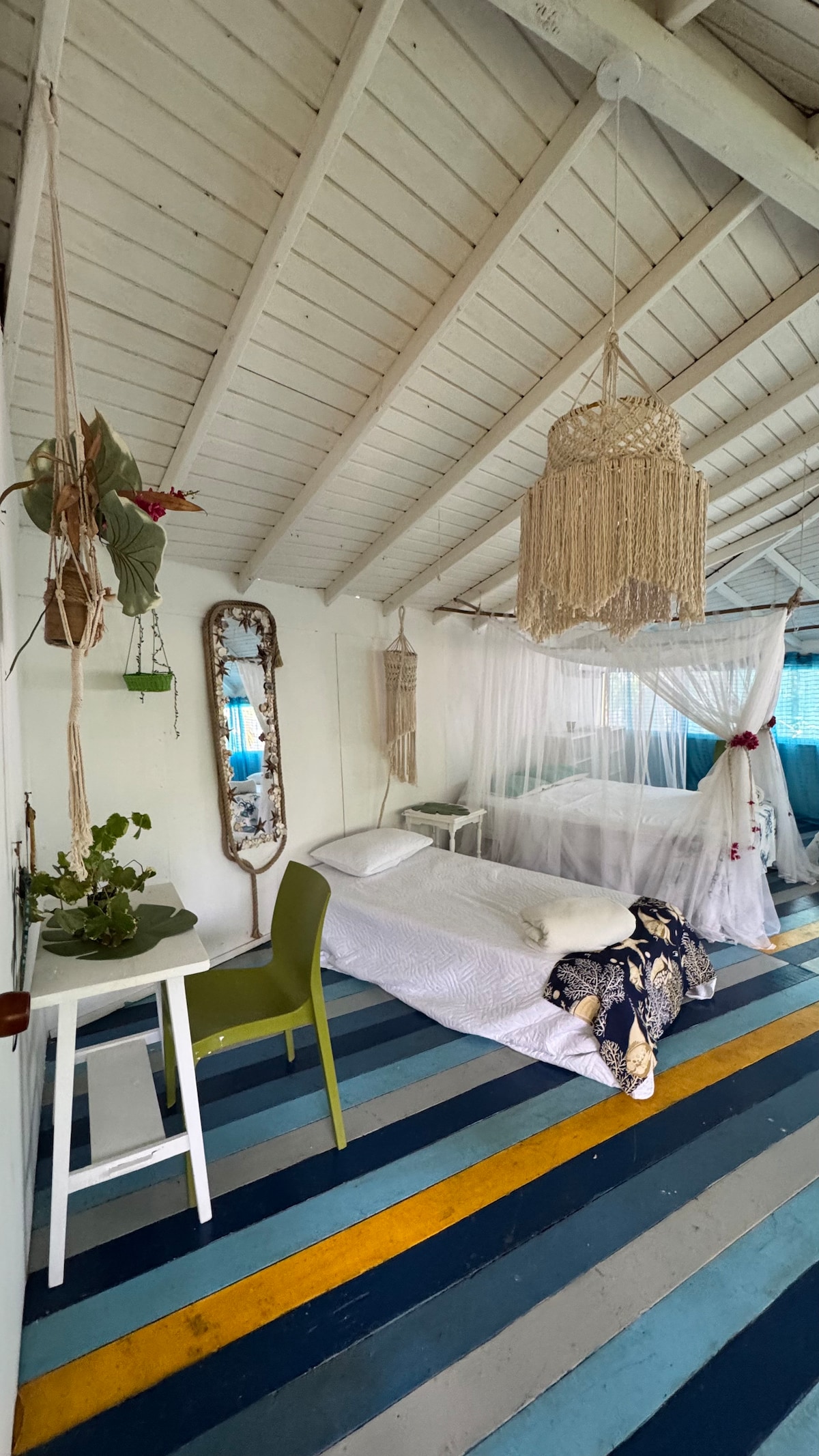Enjoy accommodation in the style of GlamBeach, a unique sustainable project in San Andrés, all rooms on the beach with access to the sea, quiet place to rest, ideal for couples; includes daily breakfast a la carte. The rate is per room for 2 people, includes breakfast. Please note that only the people who check in are allowed to enter the property.