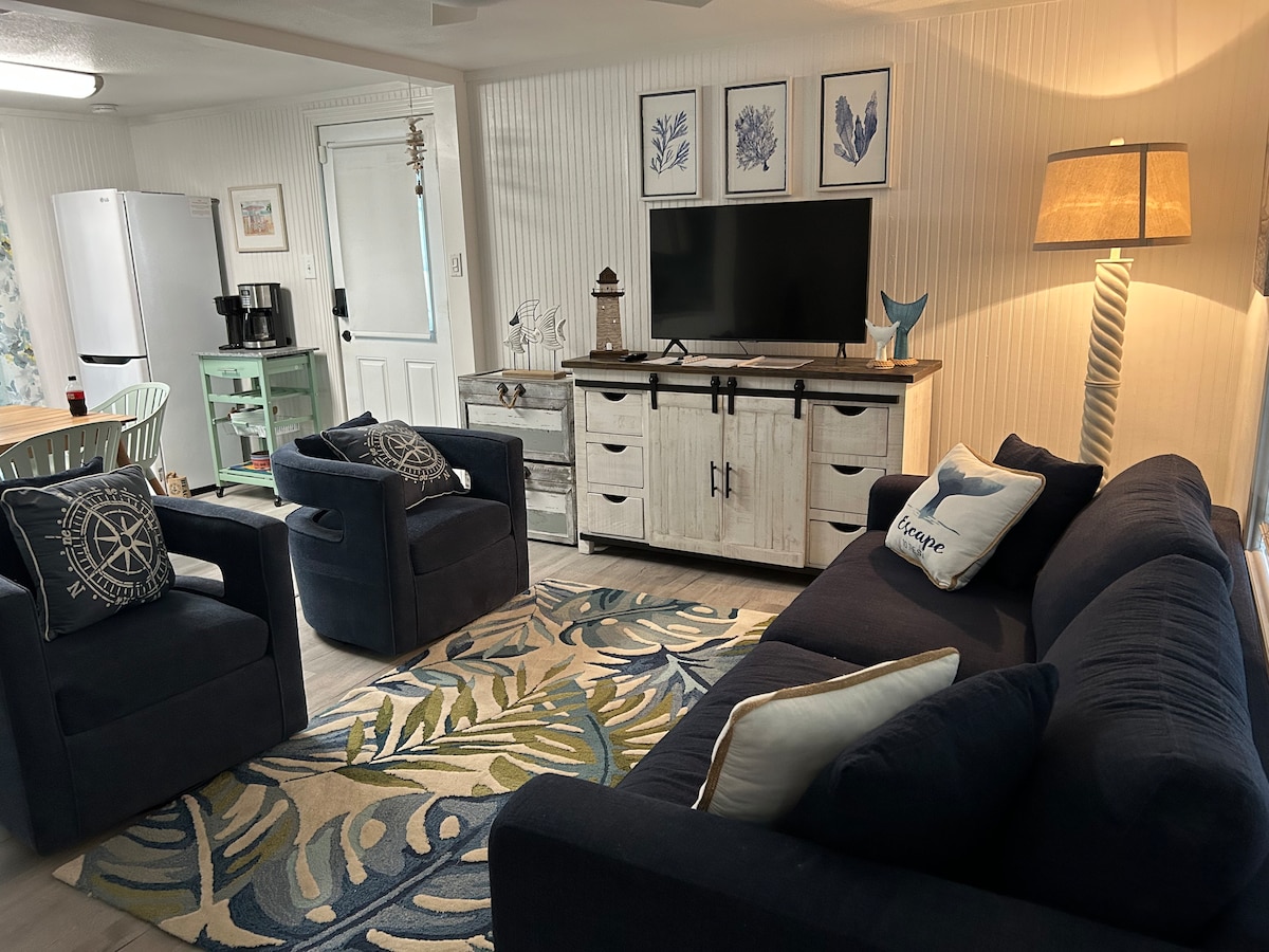 Looking to have the bay view without having to deal with the traffic of Bay Ave? This is the place for you! Kick back and relax in this calm, stylish space with a lodge-themed interior. Small town coastal vibes. It’s only 3 blocks to the pier and 9 blocks to the marina. We have plenty of room to park & wash boats on our two concrete drives w/ a hose. Our Internet is 100x100 and there are 3 TVs ready to stream. The deck looks right at San Antonio Bay and a tree shades it in the afternoon.