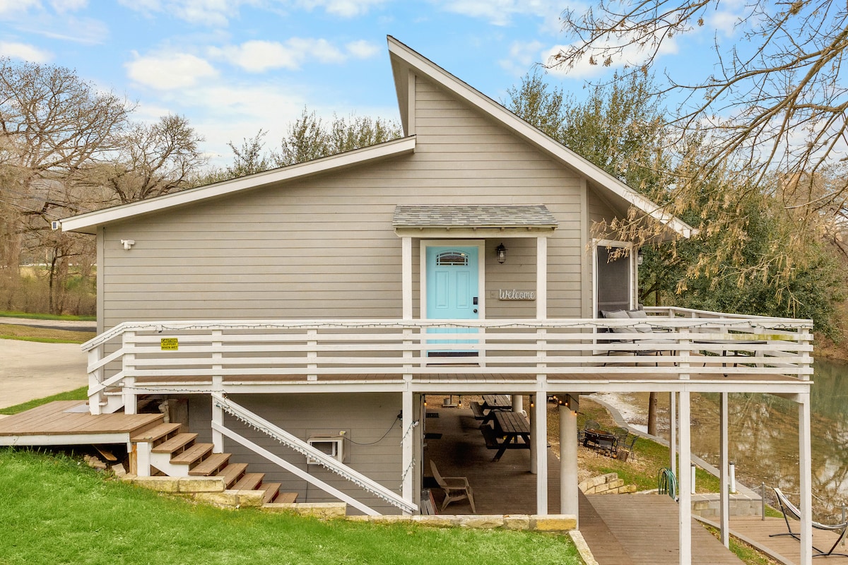 Beautiful and serene waterfront property on the Guadalupe River, perfect for families and friends seeking a quiet getaway or filling the itinerary with thrills. Enjoy kayaks, paddle boarding, sitting by the fire, relaxing in a hammock, cooking on the grill, fishing, and soaking in the hot tub while outdoors. Inside offers plenty of spaces to relax. Stream your favorite shows, play games, cook food and more.