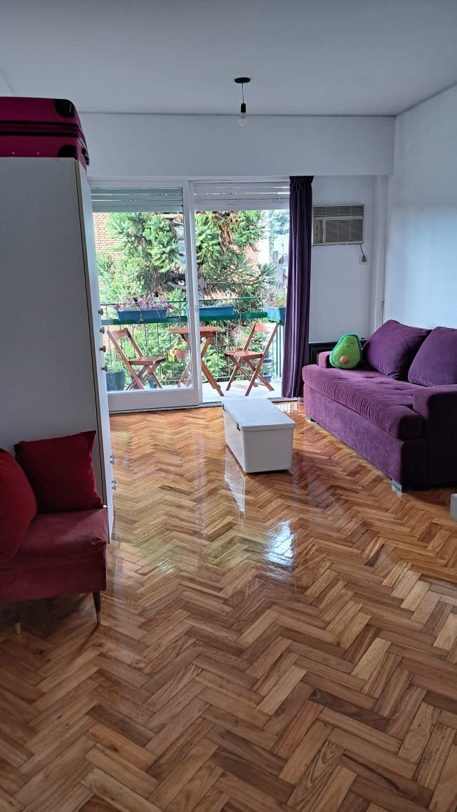 Charming apartment set in a vintage cabin style, surrounded by green trees and designer wooden furniture! With all modern amenities, such as a microwave, coffee maker, electric kettle, refrigerator, Wi-Fi, etc. In the beautiful neighborhood of Acassuso, quiet, with 24-hour security in the building! Close to bars and across from the Hipódromo de San Isidro! We look forward to seeing you!