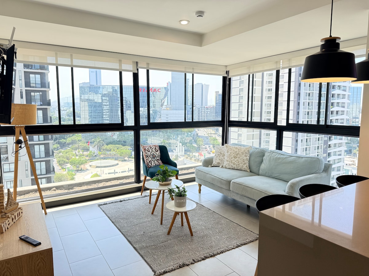 Enjoy a premium experience in this exclusive 1-bedroom apartment located in the heart of the Financial Center. Perfect for executives, business travelers, or couples looking for comfort, design, and a strategic location. The space combines elegance and functionality: Within walking distance of corporate offices, top restaurants, banks. You don't just stay here… you settle in with style. Enjoy a stylish experience at this centrally-located home.