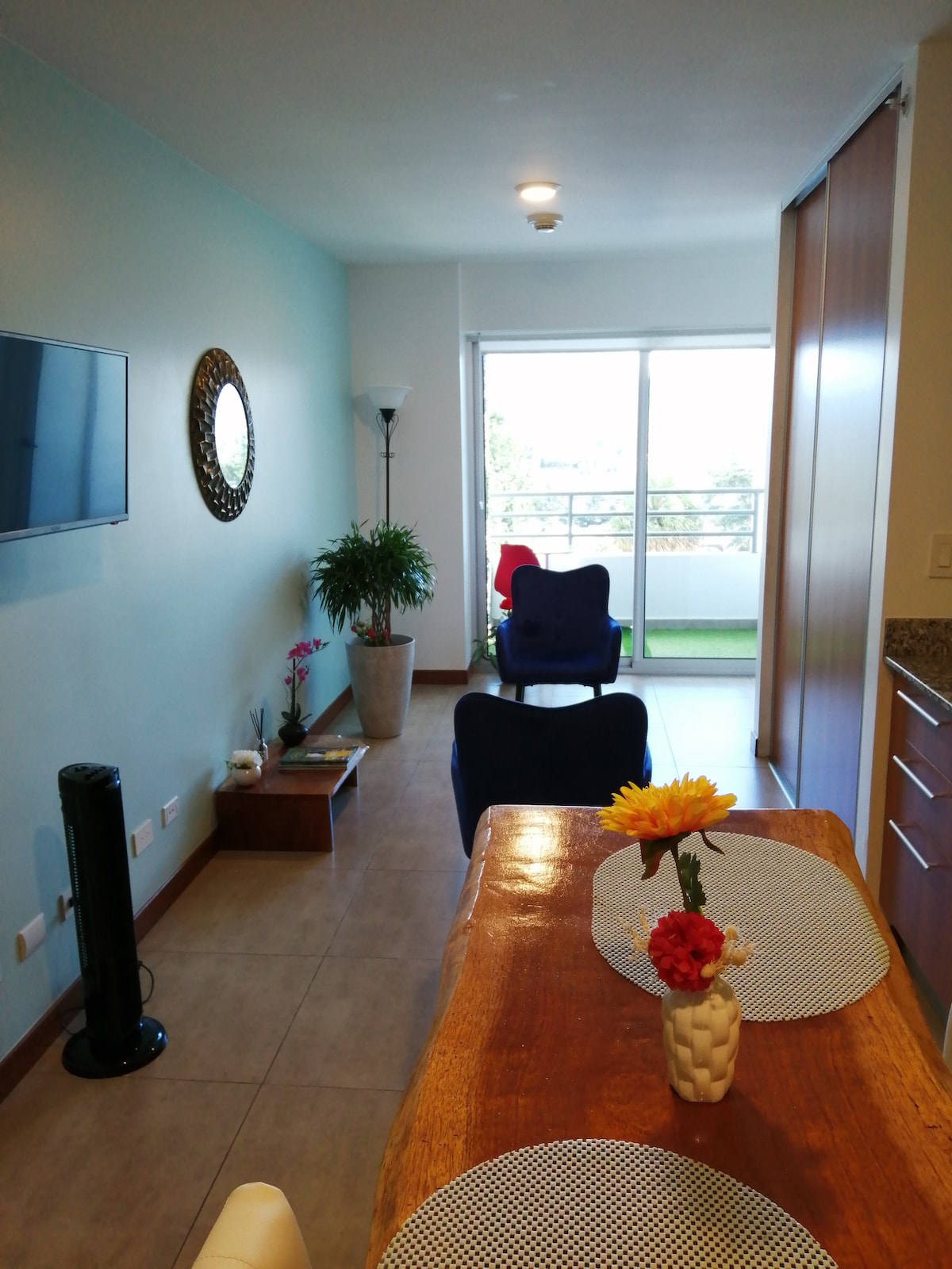 Brand new fancy and equipped apartment in 10th floor. Located just a few minutes from Juan Santamaria Airport, in "Cosmopolitan Tower", the best apartment tower of the area. Located in a safe and exclusive neighborhood surrounded by restaurants, bars, shopping, grocery store, hospitals, lovely parks, etc.. for all your necessities. It has amenities like co-working area, swimming pool, sauna, gym, bbq area, concierge 24/7. Come and enjoy of the perfect place whether to relax, work or both.