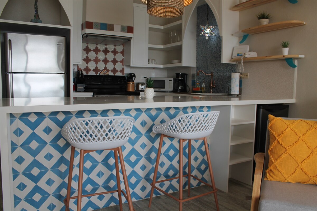 Stay on the beach in San Jose del Cabo! Within steps of the sand, our newly renovated surf condo located within in the property called "Las Olas" overlooks the sparkling Sea of Cortez. PLEASE MESSAGE ME before booking stays between August 1st-October 15th. This is the annual period of time every year when our HOA allows remodels & repairs to the condos on our property. There could be potential for some noise Mon-Fri during normal business hours. No work will be done in our condo.