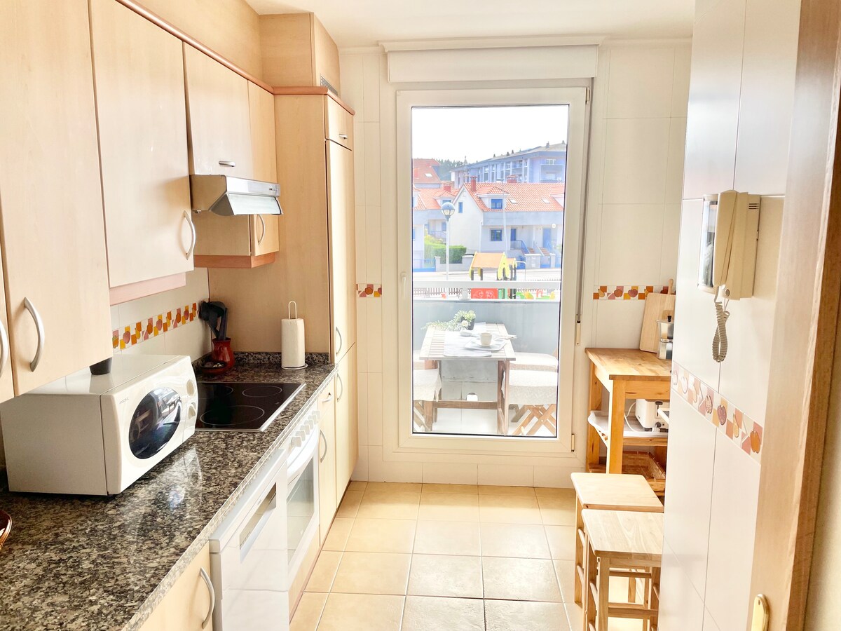 Magnífico piso de tres habitaciones frente al mar, recién reformado y amueblado. Terraza cerrada con zona de comedor y otra de estar, dos cuartos de baño completos y habitaciones con dos camas. Situado en primera linea de playa con acceso directo al mar. Emplazamiento perfecto para conocer la región, practicar surf y actividades de la naturaleza.