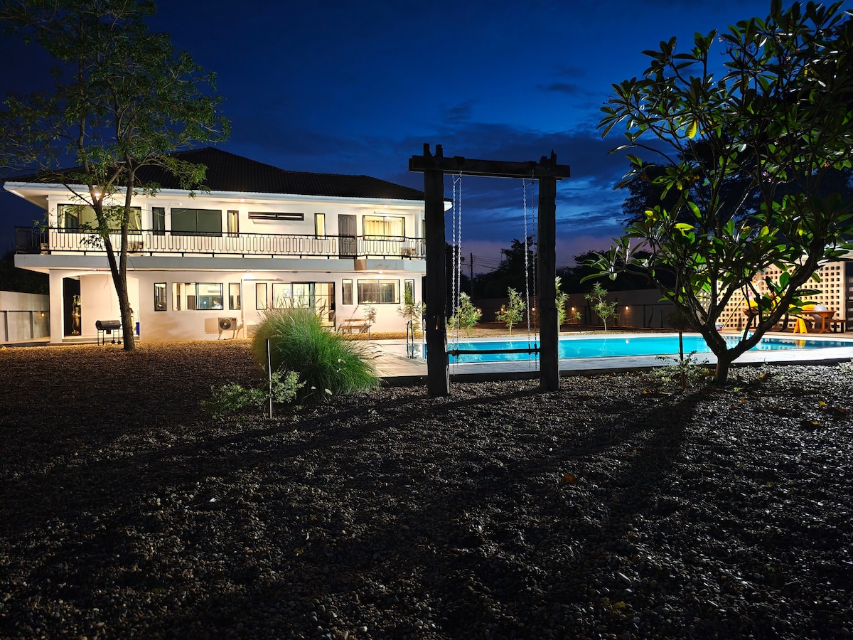 Escape to a serene retreat in Chiang Mai, surrounded by lush teak trees. This modern loft-style guesthouse offers a spacious, open layout with sleek furnishings and all the comforts you need, including air conditioning in every room. Relax by the sparkling pool, perfect for cooling off or soaking up the sun. Combining contemporary design with the tranquil charm of rural Thailand, this guesthouse is the ideal getaway from the city's hustle.