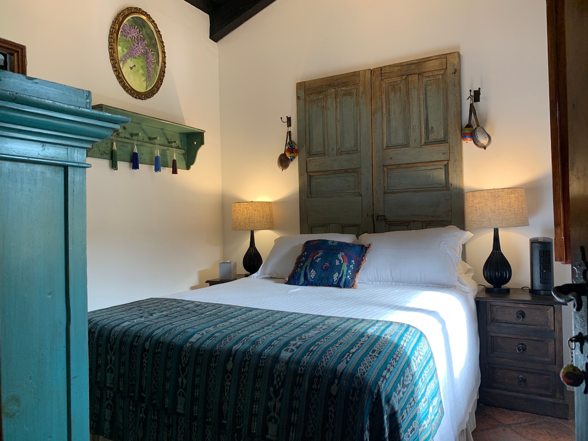 Experience the peace and comfort of our century-old house, located in one of the best areas in the heart of Antigua Guatemala. This historic gem, decorated with exquisite pieces by Guatemalan artisans, supports and celebrates local art. Situated just steps from cafes, shops, and restaurants, the house offers a serene escape from the urban bustle. From the terrace, enjoy views of the Agua, Acatenango, and Fuego volcanoes. Breakfast, prepared by a friendly local lady, is included.
