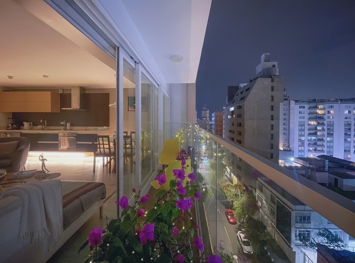 Refined boutique loft in central Miraflores with a king suite, 1.5 baths, and a balcony lined with greenery. Soft ambient lighting and clean architectural design create a calm, elegant atmosphere. Enjoy a gourmet kitchen, Smart TVs, fast WiFi, washer/dryer, weekly cleaning for long stays, and two underground parking spaces. Steps from Kennedy Park and the ocean—a serene, design-forward stay.