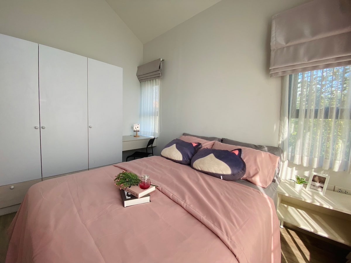 A beautiful house is in a quiet small community name Lanna City Village located in Hang Dong, spacious 3br 2.5 baths, full equipped kitchen, washer and dryer machine, 4k full HD smart TV, wifi, air conditioner for the whole entire. Close to Gad Farang for shopping, eating, western supermarket and night market, Night Safari, nature attractions, mountain temples. Airport just 15 Mins drive. Ideal for families and groups.