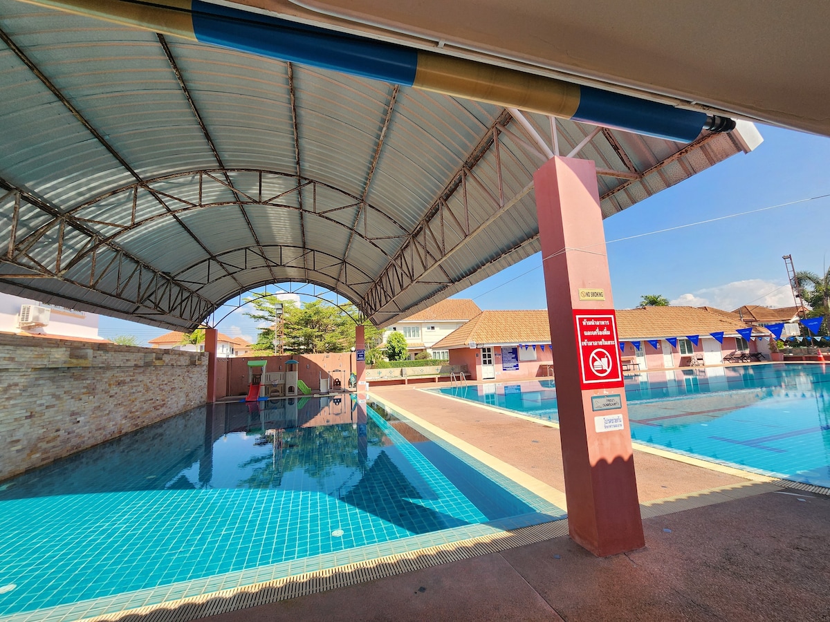 Rest and relax in your Resort Style Oasis. Your group will be minutes from the Chiang Mai attractions and just steps from dozens of restaurants and local shops! A few things you'll love: ★Resort style Pool, 2 stylish cabanas, (shared & spacious), putting green, 7 foot pool table ★Superb Location. Walk to dining and local shops. 5 minute drive to Meechok. Jet into Old City or Nimman in 15-20 minutes ★Fantastic open concept living, kitchen & dining; Large private patio ★Professionally cleaned