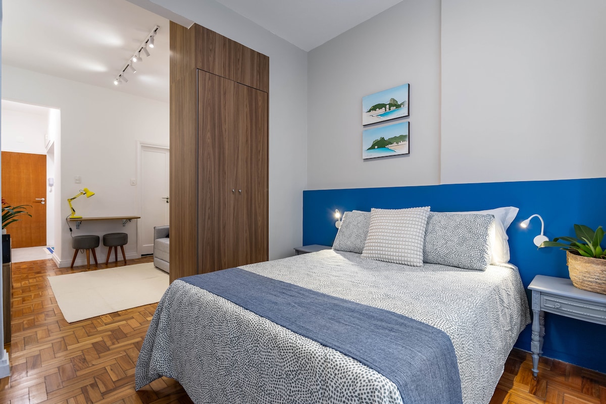 Copacabana: 4 minutes by subway! Enjoy a stylish experience at this place. Official transport to the city's sights: less than 5 minutes from the apartment, in the metro square. The surroundings are full of bars, restaurants, cafes, markets, drugstores, etc. Apartment with everything you need for your stay; kitchen with stove, water tank, iron, refrigerator, microwave, coffee maker, sandwich maker, etc. Parking in the building by arrangement. ***Stays of 20 days or more, extra cleaning: 200 reais every 15 days.