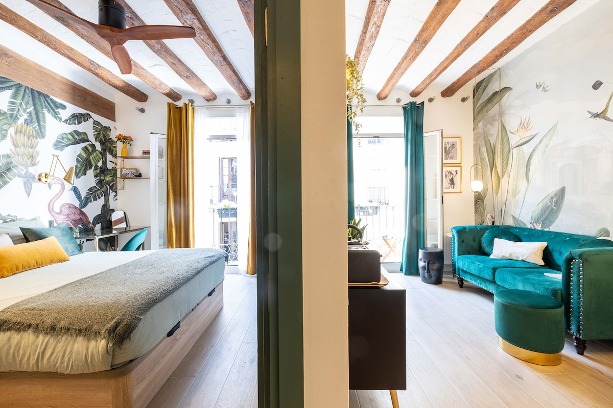 You have come to the right place to find an unforgettable apartment! Thoroughly enjoy our Charming and Warm Studio as it will transport you the southern France countryside while being based in the very heart of the hustle and bustle of Barcelona. Romantic and flirtatious in style, this flat is pampered at every corner with rustic wood details, soft and pastel tones. Few other flats could more centrally located flat than this one! Don't miss out on staying at one of only six unique 'El Alma de Las Ramblas' flats, all of them located in a recently renovated historical 19th century building. We are three friends who decided to embark on this project to refurbished 6 apartments in a same building located right off of arguably Barcelona´s most emblematic street: Las Ramblas. It was important to us to turn these apartments into cozy and functional living spaces for our guests. We chose the new beds, beddings, sofas, dining tables and chairs, lamps, kitchenware and small appliances with great care and consideration. We believe we were successful in creating an pleasant space in each of the flats- and we hope you will also agree after having spent time there. Guests have access to the entire studio. We respect the privacy of our guests and yet also would be available to provide any assistance possible that would make our guests´ stay a confortable and an enjoyable one. Enjoy meals in a romantic dining nook surrounded by floor-to-ceiling windows in this charming, sunny studio apartment. The compact layout makes intuitive use of space featuring a kitchenette while there’s also diminutive balcony This apartment is located at the epic center of Barcelona, just off at the beginning of Las Ramblas street. The area is known for its myriad activities and abundant pedestrians who have come to stroll, shop and dine in the city's most dynamic street. This apartment is as central as central can be! You will be able to walk* to many worthwhile sites: 1. La Boquería Market: 4 minute walk 2. Picasso Museum: 13 minute walk 3. La Pedrera: 22 minute walk 4. La Sagrada Familia: 42 minute walk 5. La Barceloneta (former fishermen´s neighborhood by BCN´s port): 25 minute walk 6. The beach: 30 minute walk. For a seaside view or stroll (15 mins walk) 7. Etc, (You get our point;-)) (*Walking time estimates based on (Hidden by Airbnb) Maps) Or if you wished to take a taxi or public transportation (to take you within Barcelona as well as to its surrounding cities such as Girona, Sitges, etc.) both options are also easily available within less than 3 minute walk from the flat. 1. Shortly after the confirmation of your reservation, we will write to you to collect the "tourist tax" that is obligatory and established by the Generalitat de Catalunya. The official tax standards are as follows: Adults (persons 16 and over) are obliged to pay a tourist tax of 2,48 euros (2,25 + IVA) per day spent in Catalunya, up to 7 days maximum. 2. It is also important to note that when you check-in, it is obligatory* for us to make a copy of your official ID (Passport, National ID for EU citizens, etc.) *Official Notice from the Generalitat de Catalunya It is compulsory for persons staying in accommodation establishments located in Catalonia to register there. (Article 2 of Order IRP/418/2010, of 5 August, on the obligation for registration and communication to the Directorate General of the Police of persons staying in accommodation establishments located in Catalonia.)