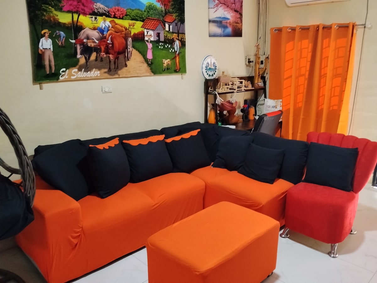 Enjoy all the house just for you and your family or friends. Relax at this peaceful place to stay with air conditioning in the living rooms and in the bedroom….full quicken…parking inside of property or side of the house Just Five minutes away, you can go and Enyo the beautiful sunset at the pier of Puerto El Triunfo.