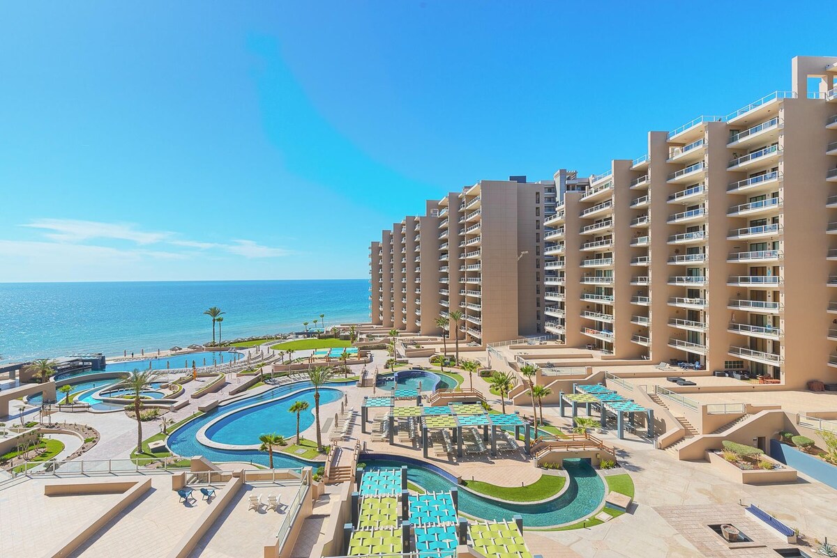 Soak up the Sun at this beautiful 1 bedroom 1 bathroom Beach Front Condo at the Sonoran Sea Resort. TRULY beach front property. We love hearing the ocean from our balcony. - 3 swimming pools (One is heated ) - Swim up Bar - 2 Jacuzzi's - Convenience store with everything you would need - Tennis Court - Children's playground - 3 Amazing restaurants walking distance * Restaurants * El restaurant de Ramón Changos (Try their Shrimp Cocktail and Shrimp Michelada) Banditos & Garufa Steakhouse