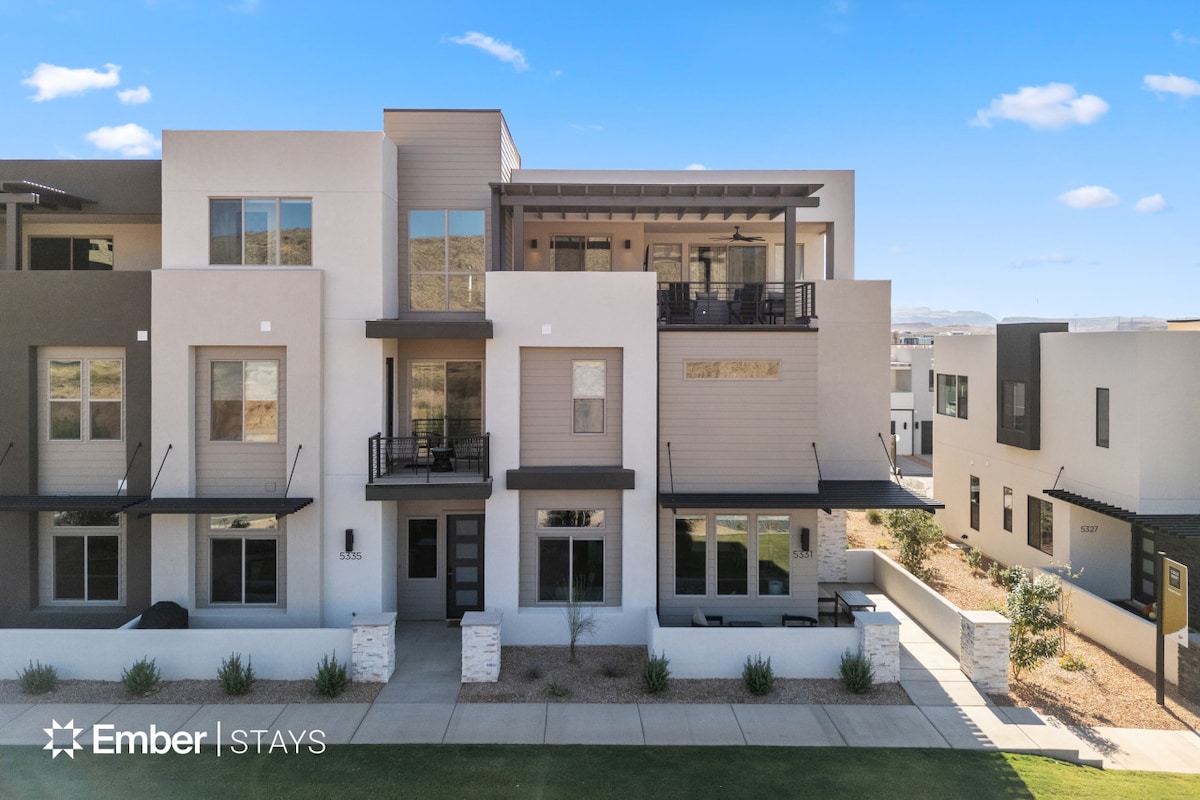 Mountain View Escape by Away We Stay Vacation Rentals. Vacation in style at our Modern Family Villa. 4BR/4.5BA, convenient location for exploring Zion & Sand Hollow Parks, minutes from St. George. Private hot tub, patio dining, access to community amenities including pool, hot tub, splash pad & pickleball courts. You can't beat this location, just seconds from I-15 & SR-9 making traveling to St George, Zion, Bryce Canyon, Sand Hallow, and many other great activities a breeze.