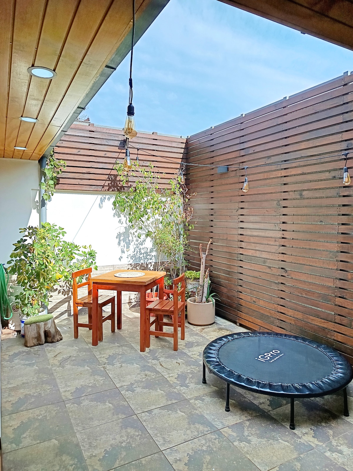Independent apartment, 'Self-contained unit' on the second floor. Fully equipped. Your reservation includes parking within the property, with independent access through the parking lot. Common area, terrace suitable for smokers, and gallery. Located in a quiet residential neighborhood, just steps from supermarkets, restaurants, fast food, public transportation, and the metro station. Only 15 minutes from the airport and 5 minutes from Mall Arauco Maipú by car.