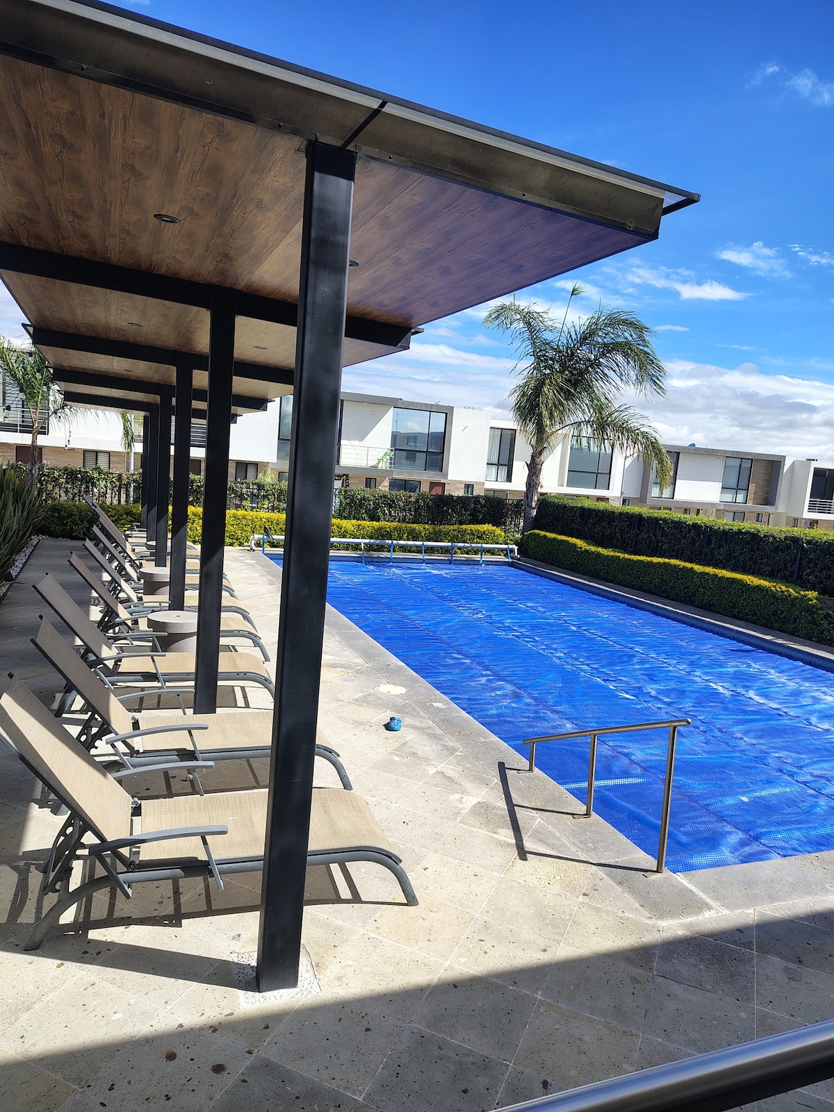 Luxury Residential House in a private condominium with 24-hour security. The condominium has a swimming pool and event room with barbecue, bathrooms and kitchen that can be booked by paying a small additional fee. The area is quiet and the residential area has large green areas to spend family time outdoors, inside there are convenience stores such as Oxxo, Asturiano, pharmacy, cafeteria, restaurants, etc. This option is a space for a guaranteed rest.