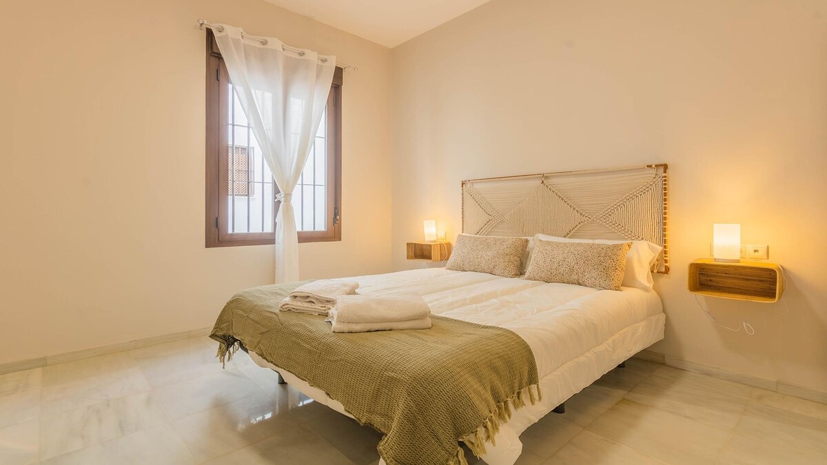 Renovated penthouse, very CENTRAL, next to Plaza de la Corredera. Large private terrace of 36, to relax after an intense day discovering Córdoba among labyrinths of streets. It has a large bedroom with an extra large double bed and a full bathroom. Living room with sofa bed, TV, music, books, games… integrated and fully equipped kitchen all with direct access to the terrace and very bright. Come visit us.