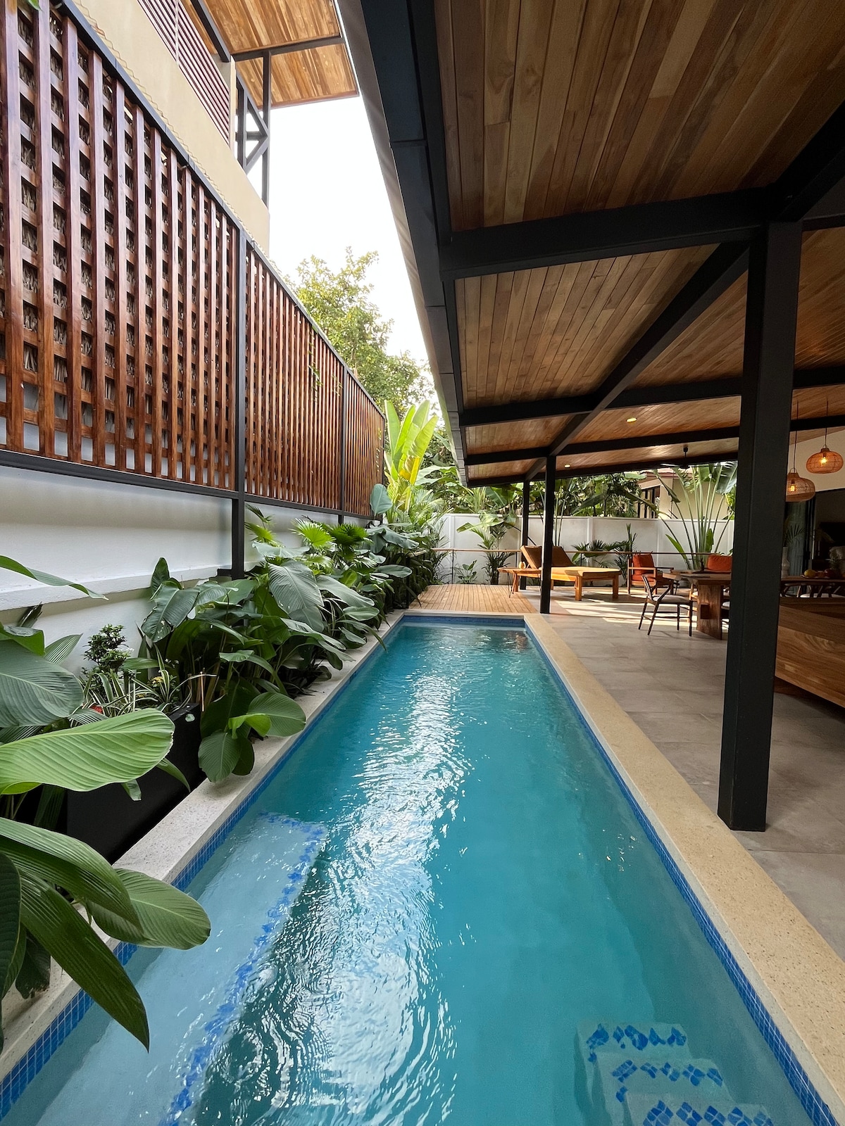 Staying at Casa Celeste feels like you are spending your days in your own beach front private nature park. A natural corridor for many of Costa Rica’s wildlife. Listening to the sounds of the waves all day is a truly amazing experience. Enjoy your private pool, outdoor bathtub & shower, BBQ, yoga deck, hammocks, outdoor seating & entertaining area. Ocean facing open modern living concept. Daily housekeeping & personal concierge services provided. We are approximate 1100 meters from Santa Teresa
