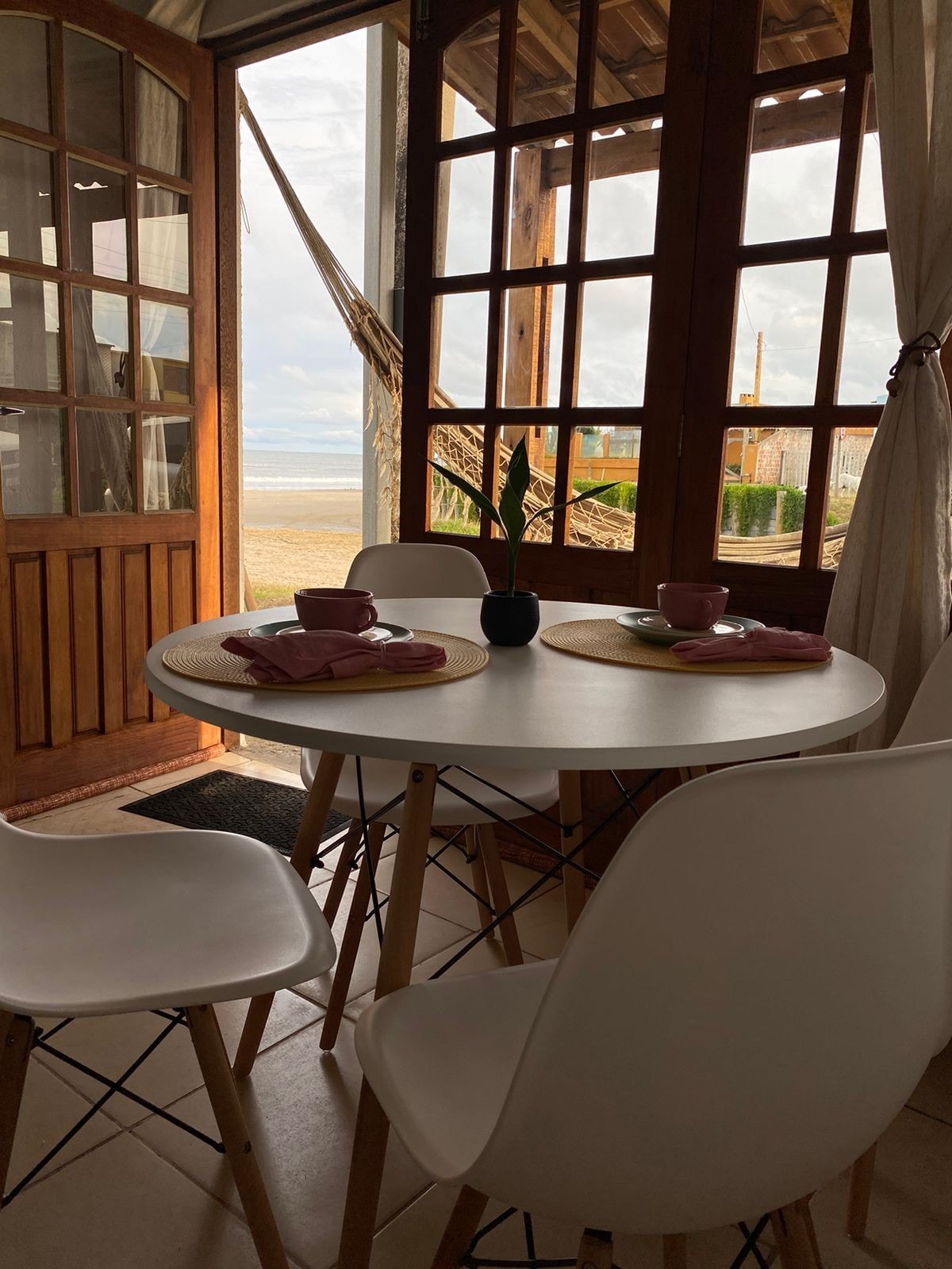 Have fun with the whole family in this stylish place on the edge of Hermenegildo beach. A place with a privileged view. There are 2 rooms, the main one being the living room-kitchen with fireplace, bedroom, bathroom. The environment is very well equipped with a refrigerator/freezer, stove, toaster, electric kettle, microwave, air fryer, TV and Wi-Fi. In the second room, there is a garage, 2 bedrooms, 1 bathroom, barbecue, TV, cooktop, refrigerator, wood stove, sofa bed, hammock, 2 bicycles, 2 sun loungers.