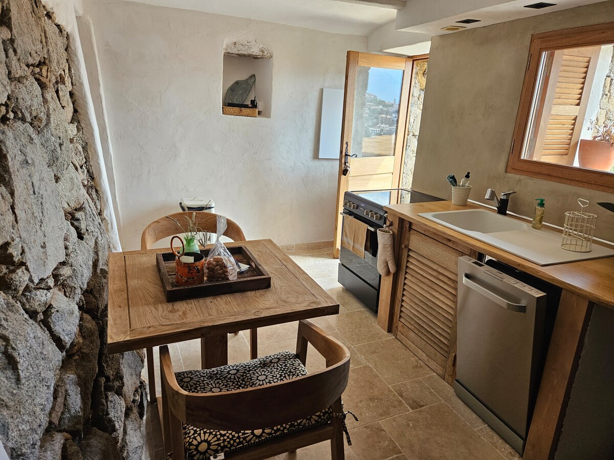 The genuine charm of a traditional Corsican house, renovated in 2025, fully equipped with all modern comforts, with an (unheated) swimming pool and a flower-filled garden, located in the historic center of the village. Exceptional views of the sea and mountains. Beaches and port just 7 minutes away by car. A paradise for hikers and trail runners, with many hiking paths starting right from the house, suitable for all levels. 8 sandy beaches nearby, and water sports just 10 minutes away by car.