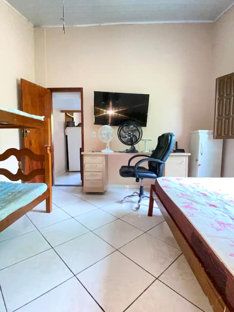 Come and connect with nature and experience incredible moments on the Maraú Peninsula. Our house is surrounded by native plants and a cozy and special refuge. There are two independent studios, in the same format, separated by a double wall and with private balconies on opposite sides, ensuring total privacy. The studio has air-conditioning, a double bed, a kitchen equipped with basic utensils, a bathroom and a hammock on the balcony. We are only 1 km from the beach and 5 km from Barra Grande.
