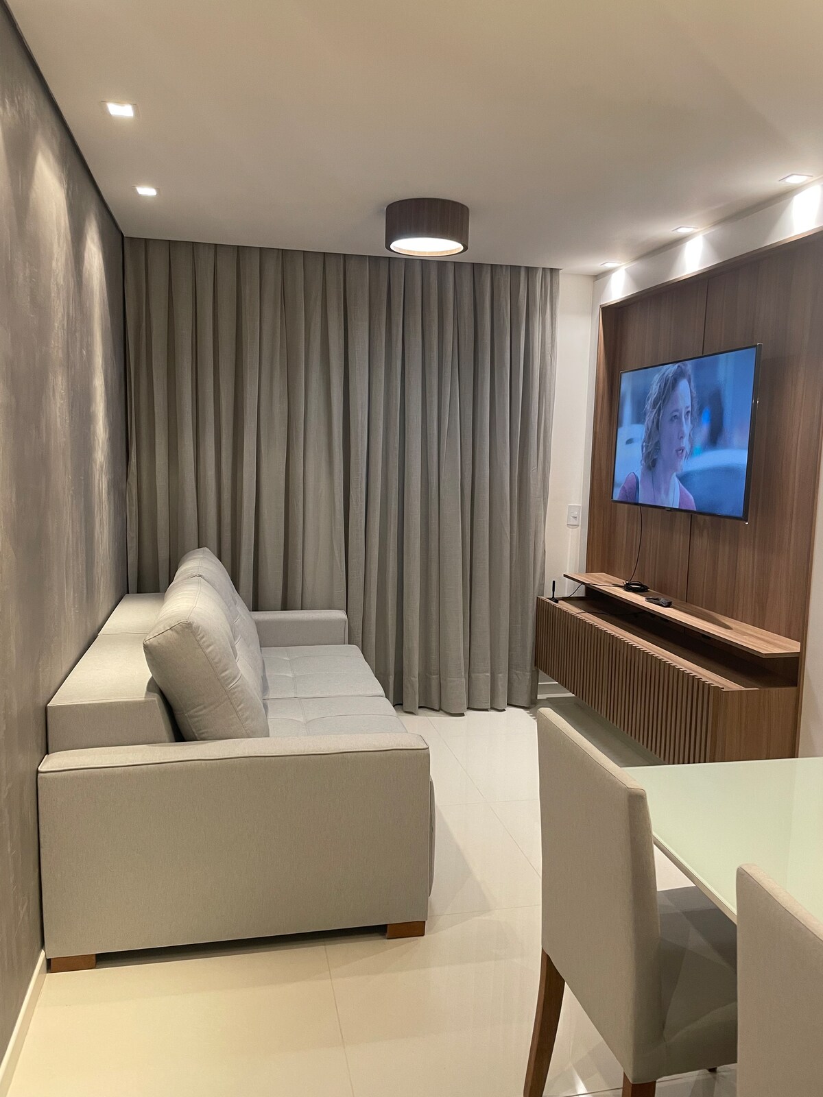 This Studio is beautiful and cozy, it is 27m² super well distributed with a lot of comfort and practicality. In the bedroom, we have a double bed, air-conditioning, a heater and space to accommodate your belongings. In the living room, we have a 42" TV and, in addition to cable channels, we have streaming: Disney+, Star+ and Netflix. The location is excellent, just 500 meters from the mall, markets, cafes and restaurants. We are in the best location in the region for business trips or sightseeing, in this neighborhood you will be close to everything!