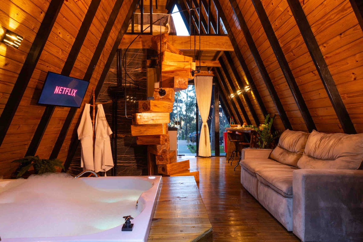 Take a break to relax in nature. Our cabin has an ecological fireplace to make cold days even more romantic. And the whirlpool is the special touch. The perfect place to experience unforgettable moments with your loved one.