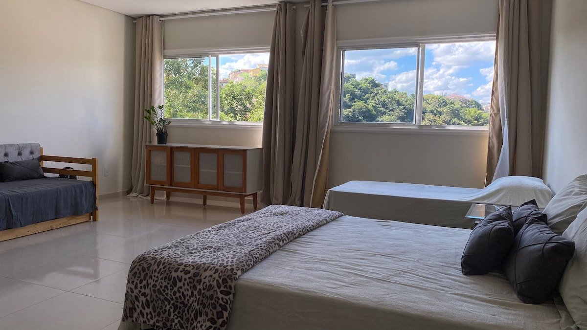 ACCOMMODATES UP TO 3 PEOPLE - QUEEN BED AND A SOFA BED. THE FLAT PROVIDES COMFORT, LEISURE, SAFETY AND TRANQUILITY. LOCATED ON A QUIET STREET AND A 5-MINUTE WALK TO PARQUE DAS ÁGUAS AND SÃO LOURENÇO SHOPPING CENTER. THE CONDOMINIUM HAS A SWIMMING POOL AND BUNGALOWS AROUND IT, A SAUNA, GYM, KID'S SPACE, SHARED LAUNDRY AND GARAGE WITH 24-HOUR VALET PARKING. IT ALSO OFFERS AN OUTSOURCED BREAKFAST SERVICE.(THOSE INTERESTED SHOULD NOTIFY THE RECEPTION IN ADVANCE)