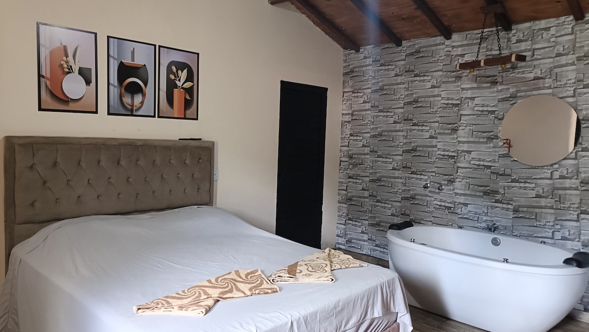 Relax in this unique and peaceful place. The all-glass kitchen has a magnificent view of the mountains! Our Victorian bathtub is a charm in itself, bringing comfort and coziness to your days of rest in the midst of nature! We have a restaurant on site where we serve a delicious breakfast (separately) and also lunch prepared by chef Rosângela Leite, Mimo Restaurante da Rô. Best of all is our excellent location, right on the waterfall route and 10 minutes from downtown!!!