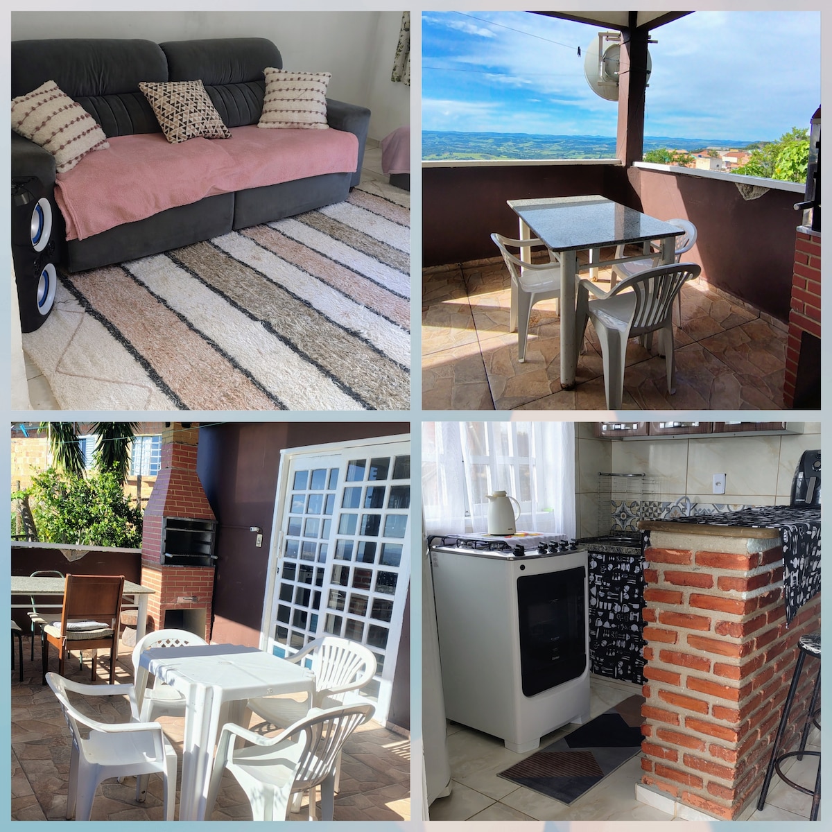 Perfect house in the center. Close to everything! With its own parking lot and views of a sea of mountains. Local vegetation, lots of birds and the most beautiful sunset! The house is fully equipped and has two bedrooms, one of which is a suite. We can accommodate up to 7 people. Barbecue area with pre-molded barbecue and lots of comfort. Welcome to you, your family and friends! The space is cozy. The house is airy, well located. We offer a full kitchen, smart TV and Wi-Fi.